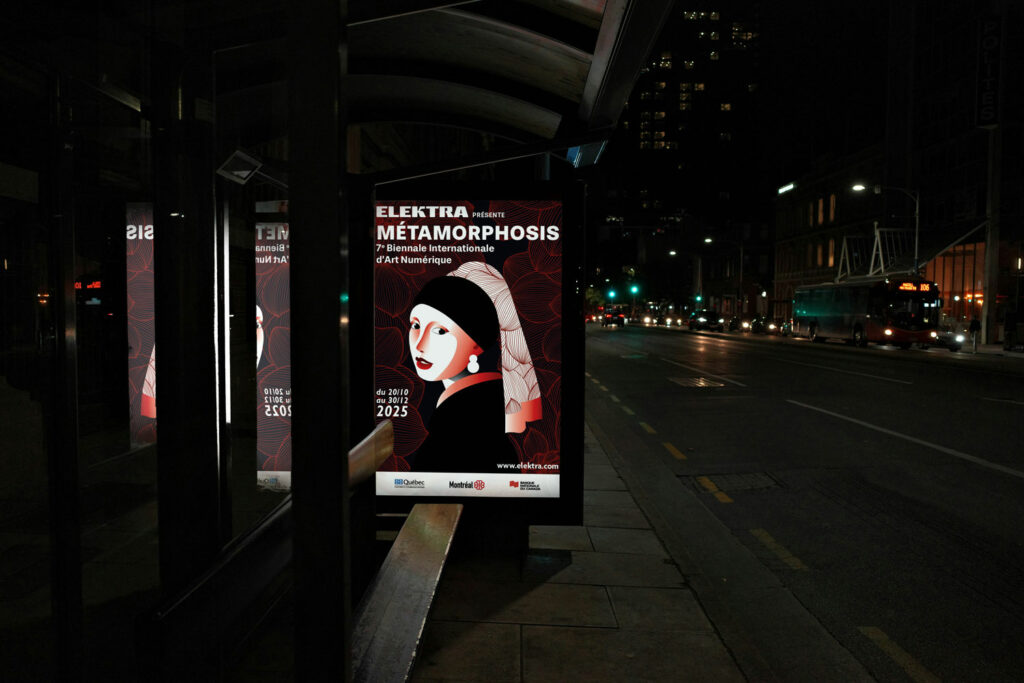 Création d’une affiche pour la 7e édition de la Biennale ELEKTRA à Montréal, un événement dédié aux pratiques artistiques numériques contemporaines. L’affiche devait traduire l’univers de l’art numérique à travers un visuel accessible et reconnaissable symbolisant la métamorphose de l’art classique vers le numérique, en jouant sur le contraste entre héritage artistique et réinterprétation contemporaine.